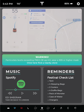 Project Tesla: The project brief was to further the experience of Tesla users in a scenario. Our scenario was four friends driving to a music festival. The car display is about tablet size. Designed for both the phone app and the car display.